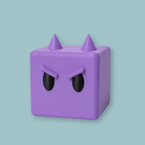 MINIGRUMP es un mini cubito morado, con cejas enfurecidas y corazón inquebrantable (o eso quiere hacer creer). MINIGRUMP vive en la ESQUINA TORMENTA del MINIVERSO, donde es el guardián del grupo y finge que nada le entusiasma. Le encanta el orden, el silencio y las normas.
