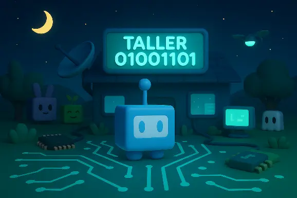 MINIBOT es un mini cubito azul, con antenita y panel frontal brillante. MINIBOT vive en el TALLER 01001101 (M) del MINIVERSO, donde arregla cosas y colecciona minitornillos. Es lógico, puntual y lleva un registro de todo.