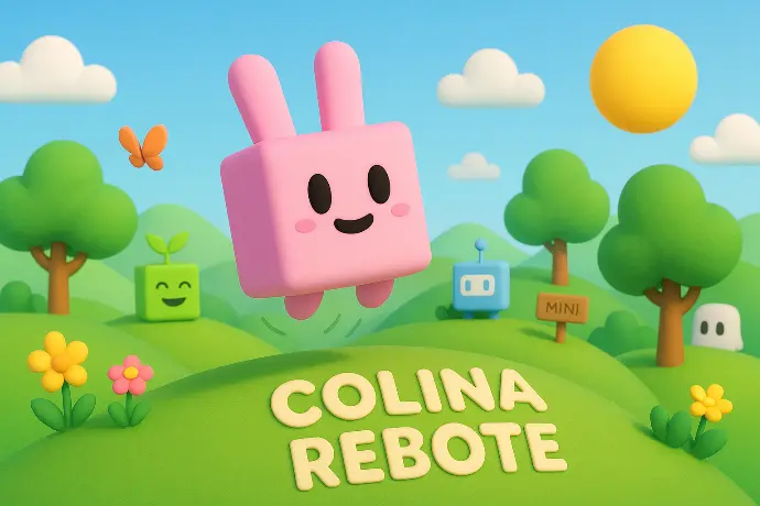 MINIHOPS es un mini cubito rosa con orejas, que no sabe estarse quieto. Vive en la COLINA REBOTE del MINIVERSO y organiza carreras de nubes al atardecer. Es risueño, curioso y siempre llega dando dos saltitos extra. Si hay silencio, el trae la risa. Si hay un problema, lo afronta con energía.